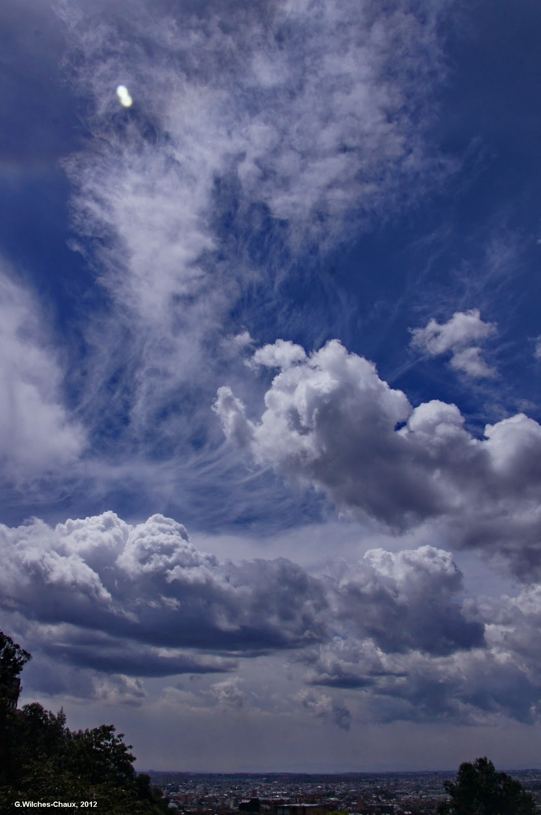 Algunas imágenes del espectáculo que nos regaló hoy el cielo cirroso (no de cirrosis sino de cirros) sobre Bogotá
